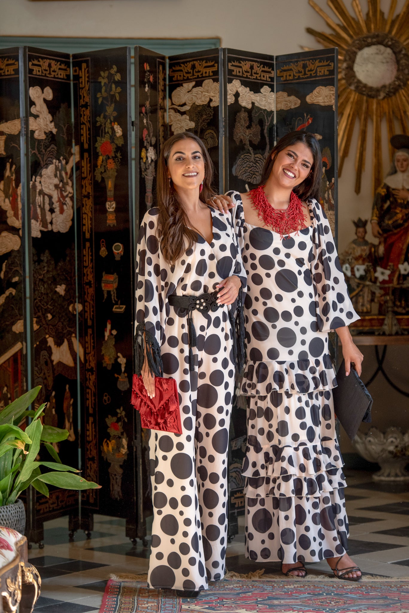 Mono vega eclipse de gasa estampado en crudo con lunares de distintos tamaños con manga murciélago y flecos en el filo de la manga en el mismo tono negro.