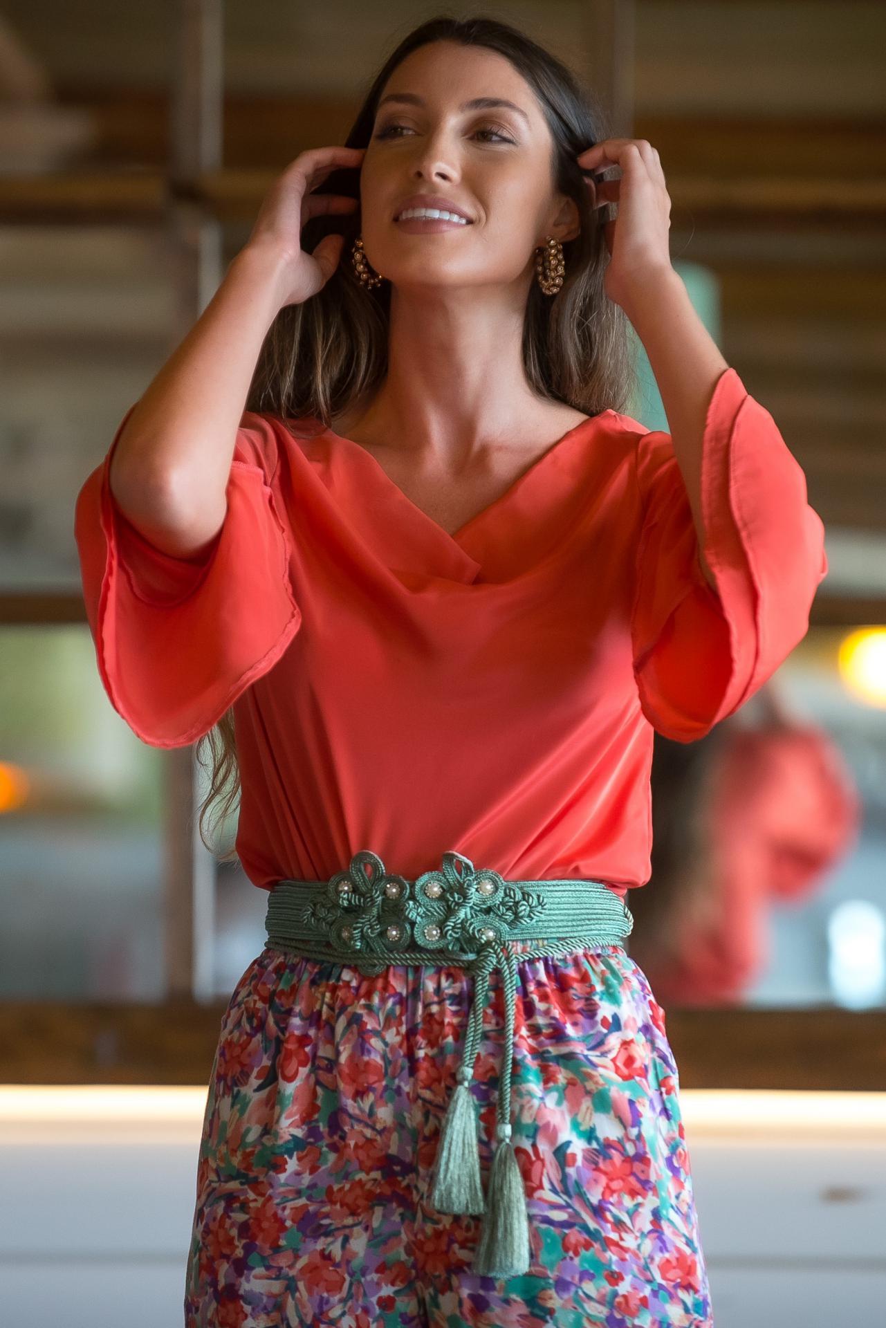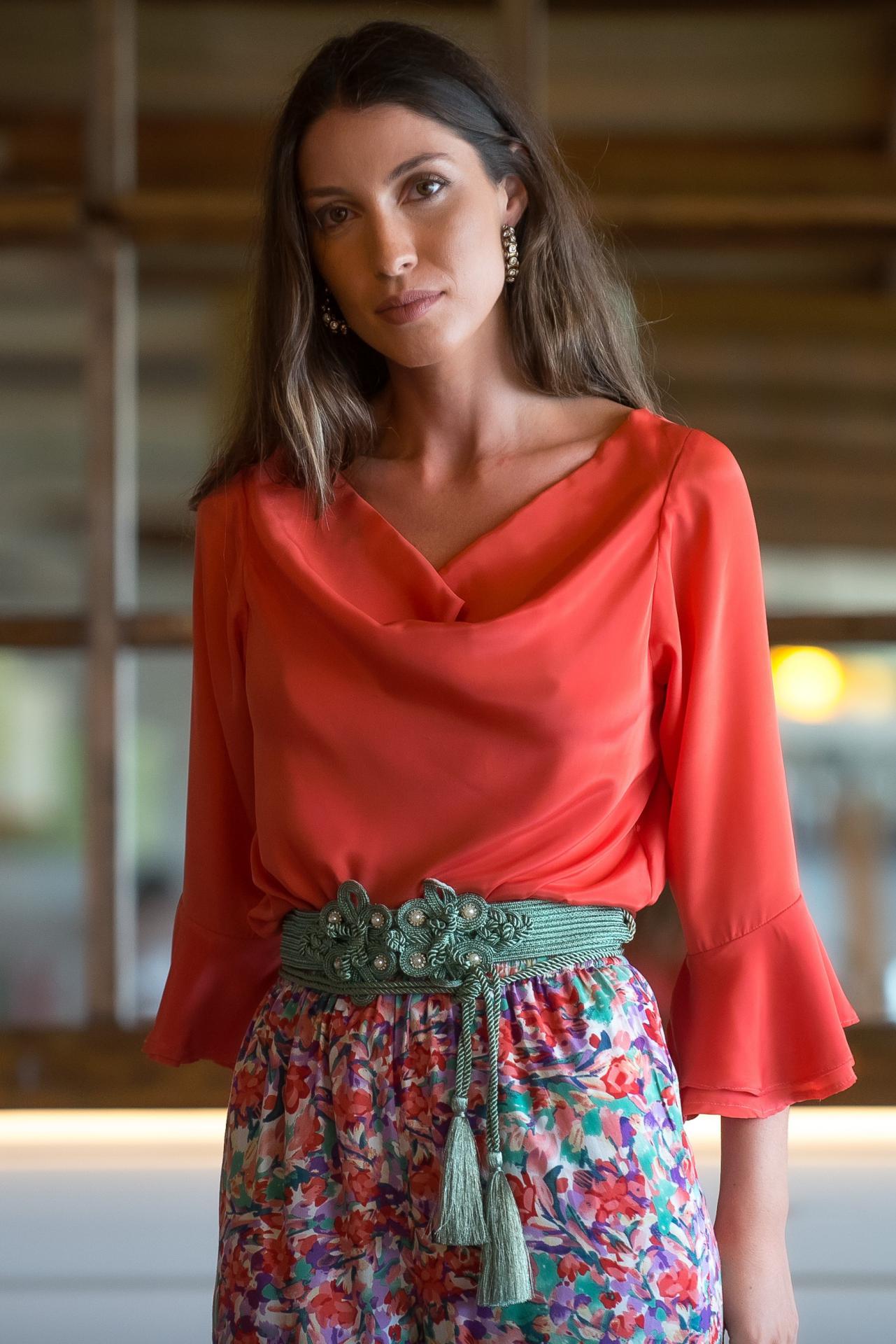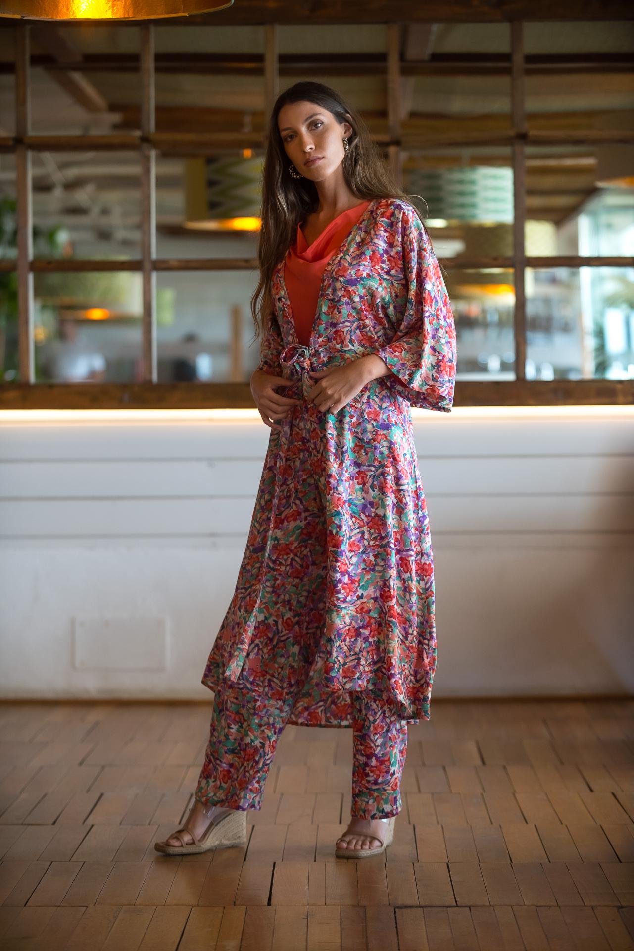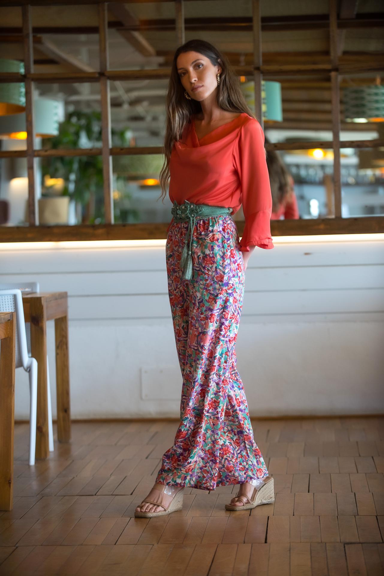 Pantalón de viscosa con la cinturilla fruncida en estampado Ágata