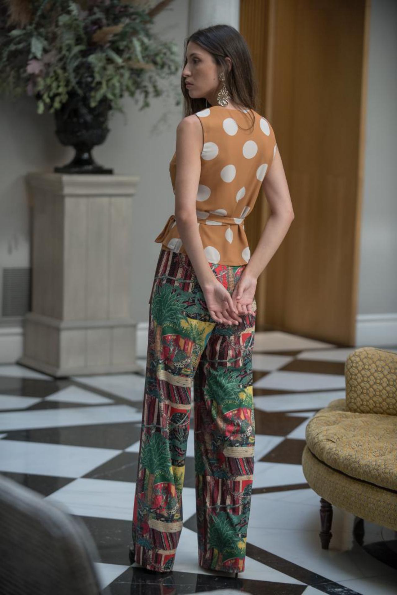 Top cruzado sin mangas en gasa mostaza con lunares grande en crudo